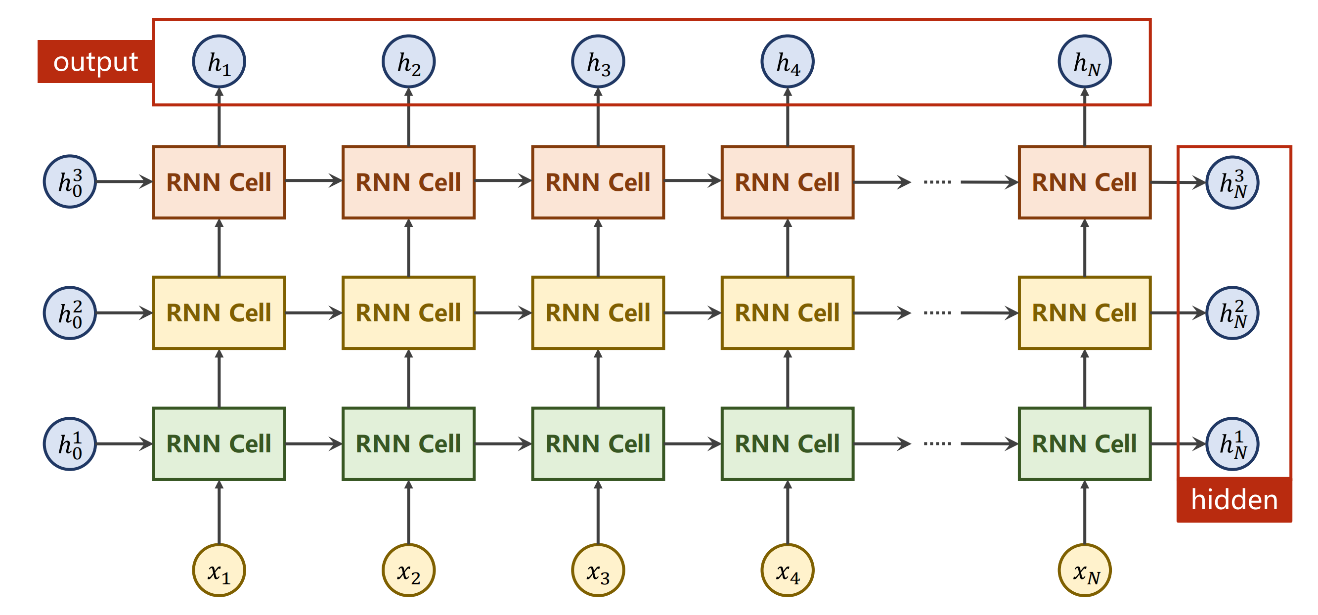 - 层间连接:展示了多层RNN中信息如何在不同层之间传递